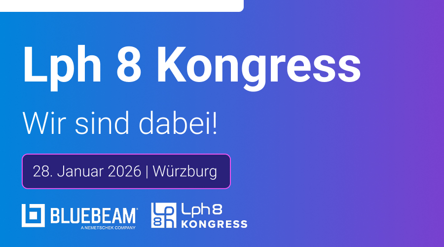 Besuchen Sie uns auf dem Lph 8 Kongress in Würzburg am 28. Januar 2026. Dies ist die erste Spezialveranstaltung für mit der Lph 8 befasste Architektur- und Ingenieurbüros. Bluebeam wird als Gold-Sponsor live vor Ort sein und unser Team berät Sie gerne, wie Sie mit unserer Lösung Ihre Bauprozesse optimieren.