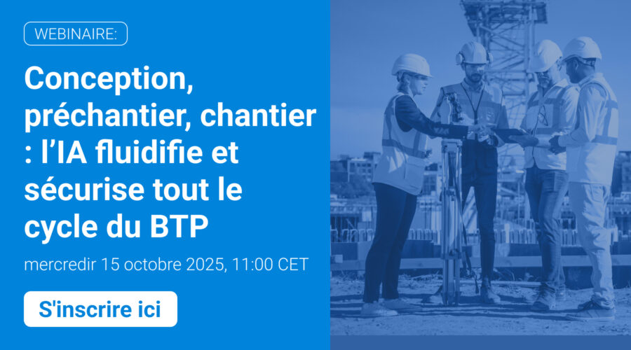 Nous vous invitons à découvrir lors d’un webinar exclusif comment l’IA peut fluidifier et sécuriser l’ensemble du cycle de vie d’un projet : conception, préchantier, chantier.